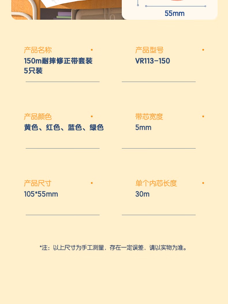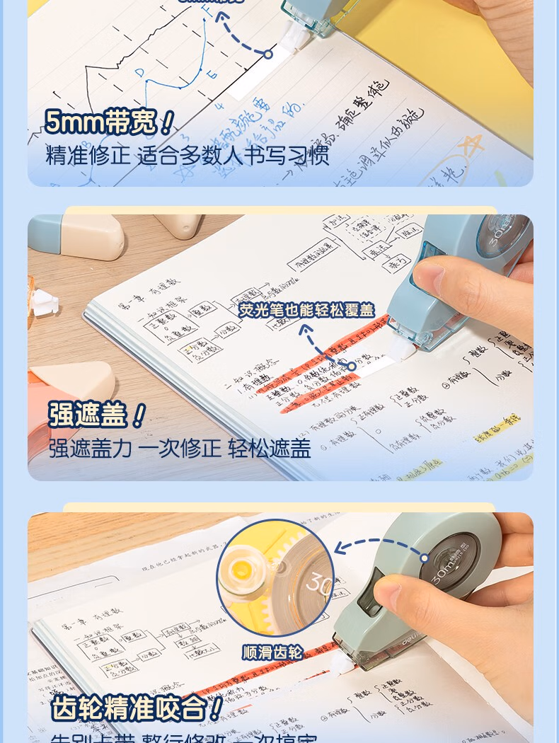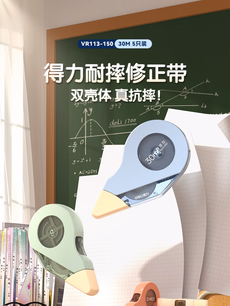 得力(deli) 大容量耐摔修正带文具学生改正带低噪音PET带芯顺滑强遮盖复印无痕便携不断带涂改带 【耐摔静音款】5个装/共150米