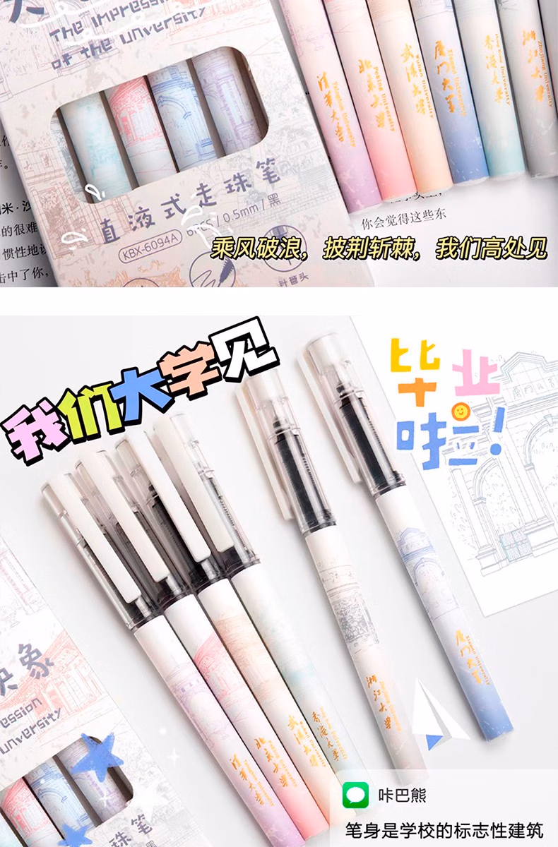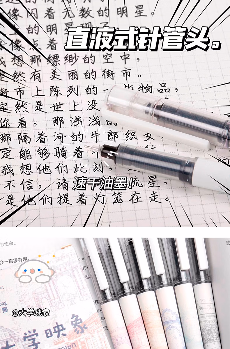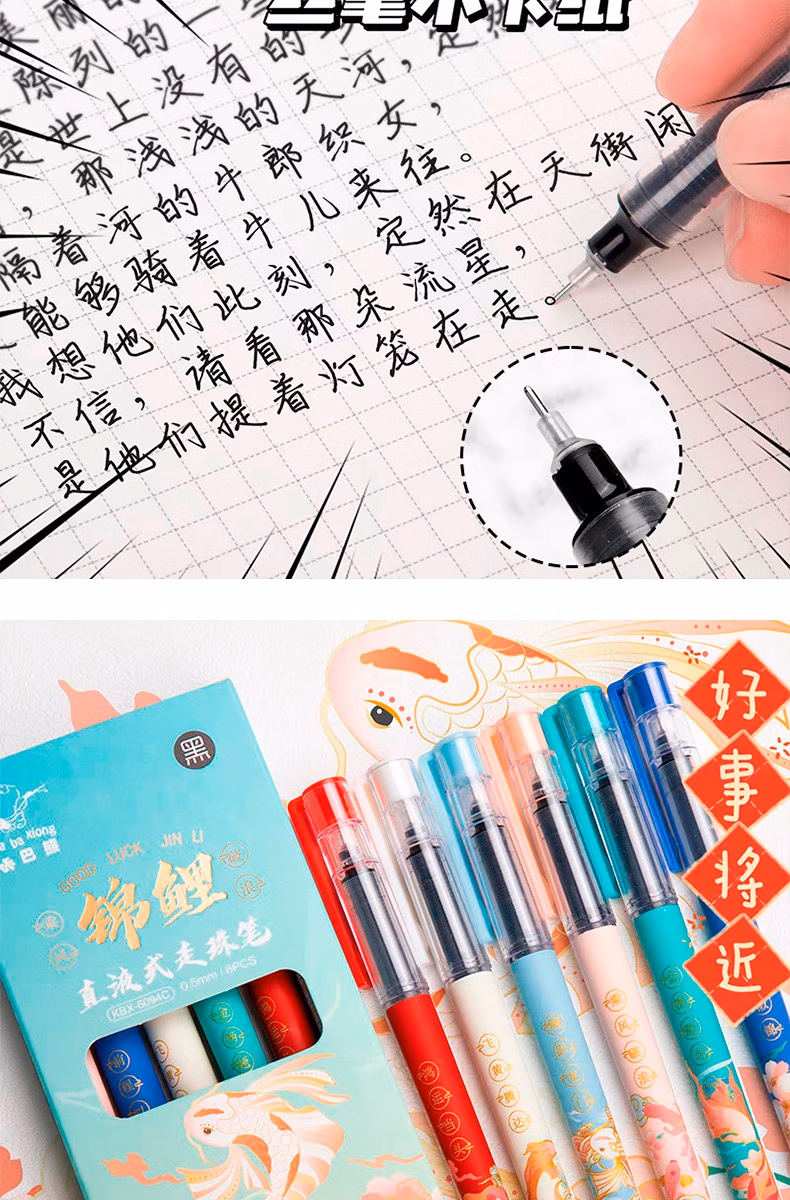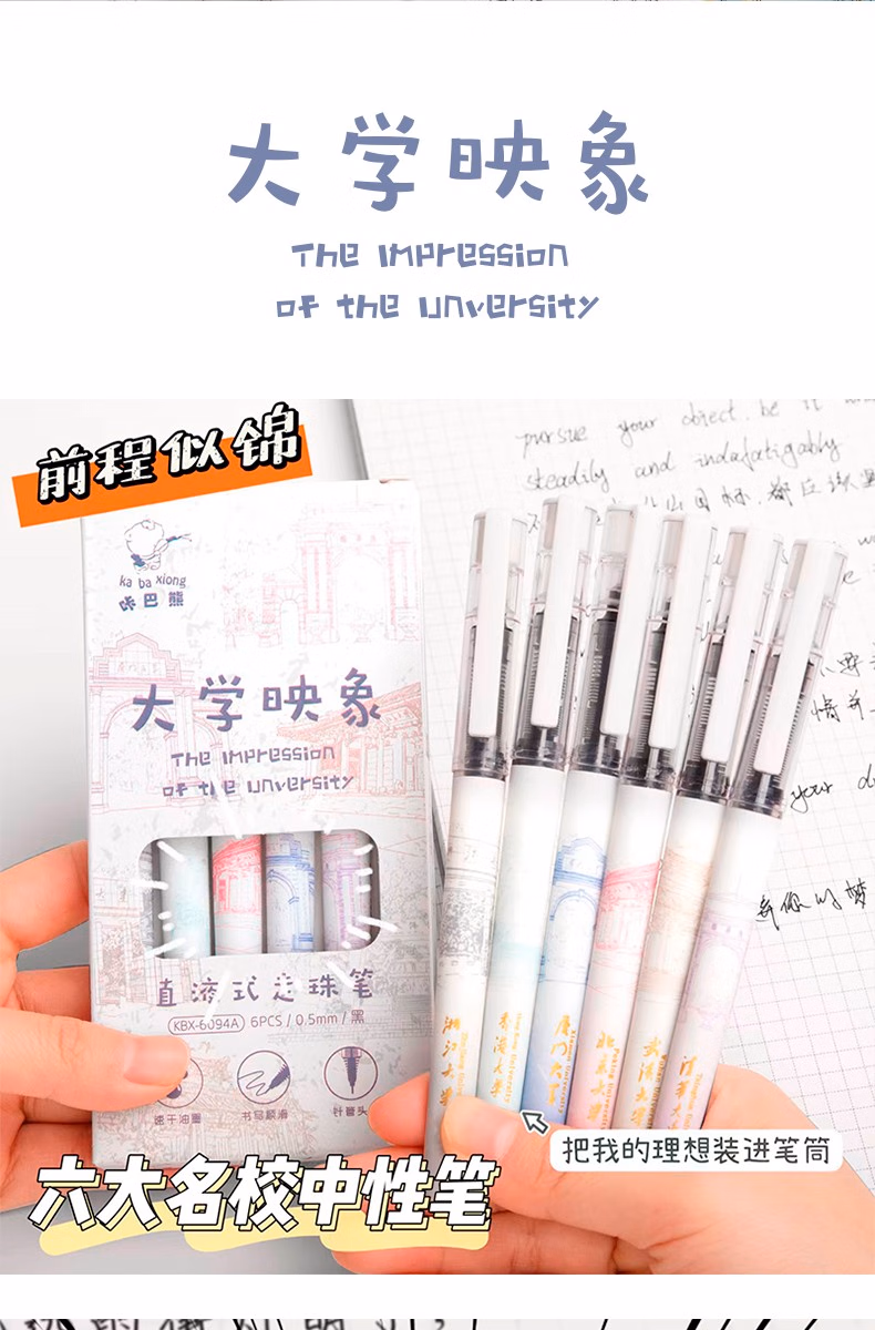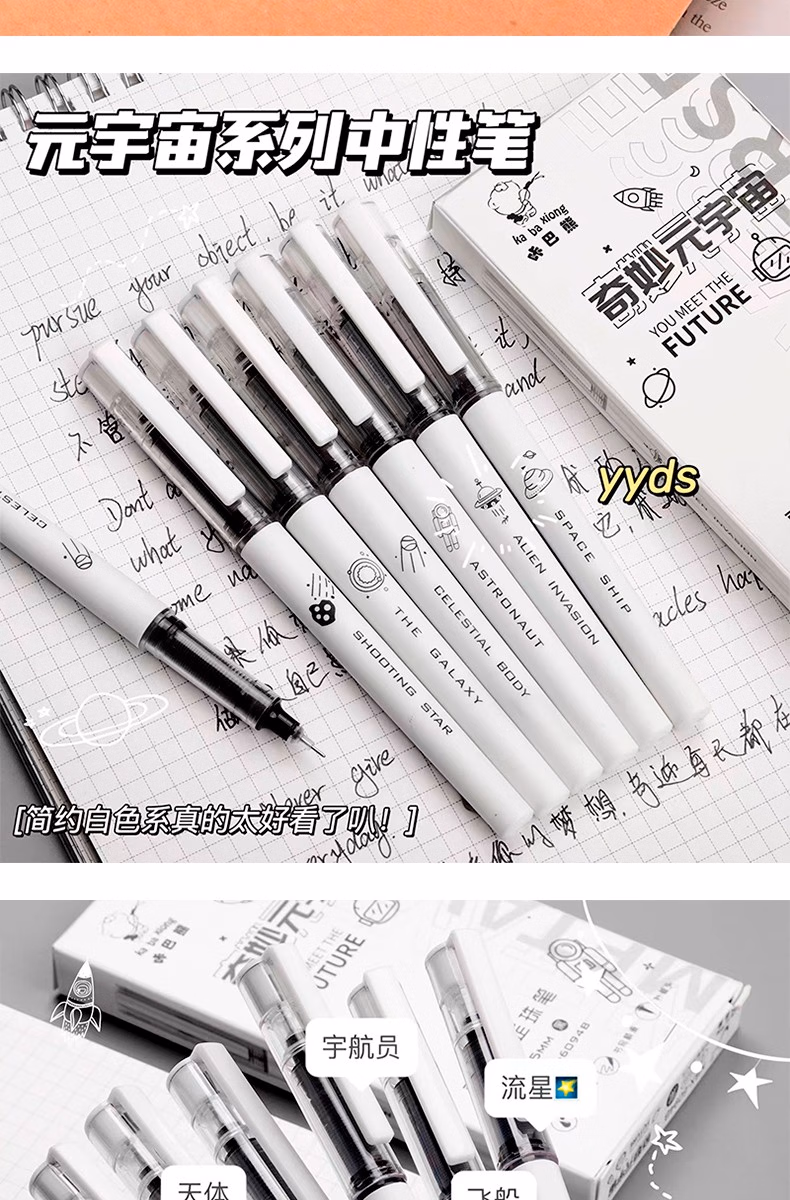 咔巴熊元宇宙直液式走珠笔学生考试专用刷题笔0.5速干签字笔全针管中性笔ins日系高颜值黑笔商务办公水笔 奇妙元宇宙 6支【1盒装】