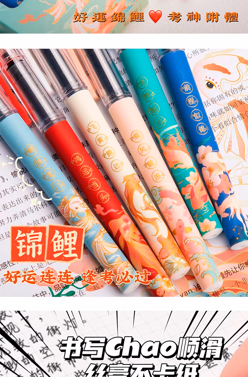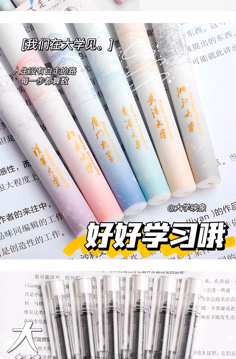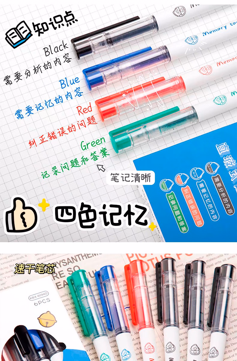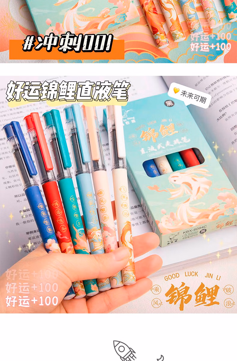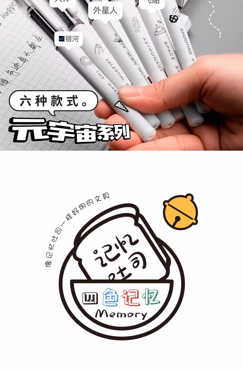 咔巴熊元宇宙直液式走珠笔学生考试专用刷题笔0.5速干签字笔全针管中性笔ins日系高颜值黑笔商务办公水笔 奇妙元宇宙 6支【1盒装】