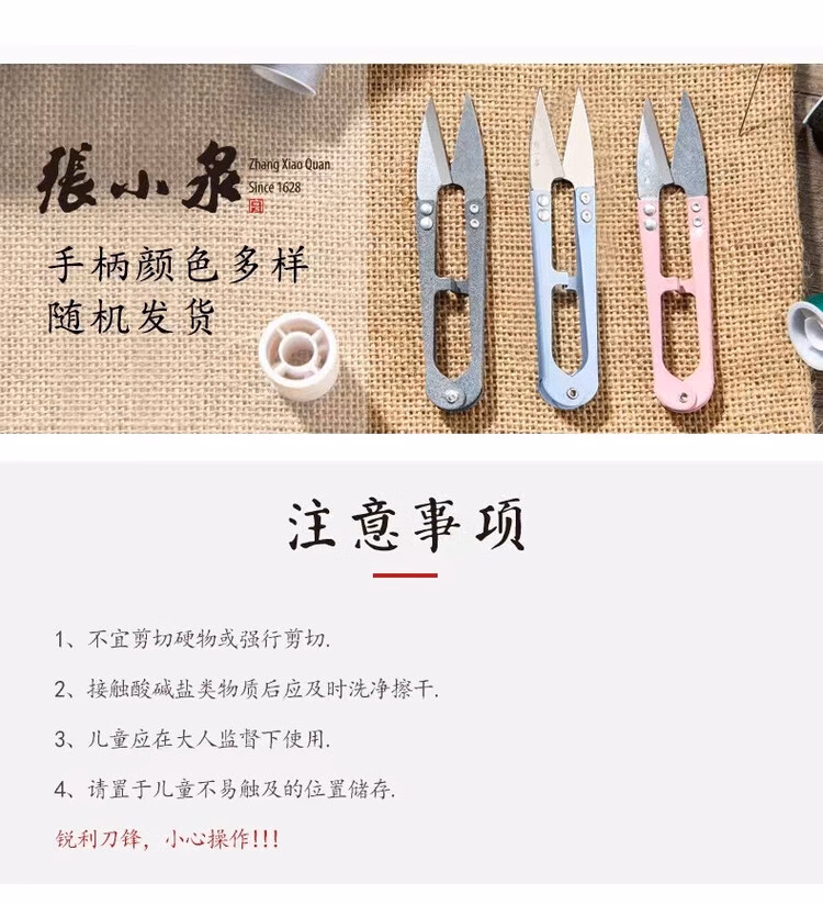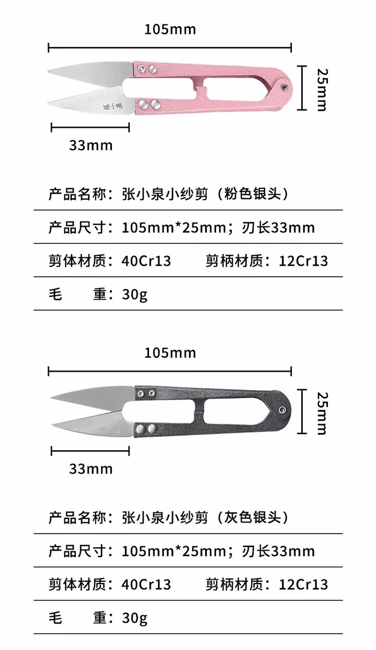 张小泉小纱剪修剪线头小剪刀十字绣U型剪碳钢大号弹簧纱剪刀包邮 张小泉纱剪随机色【2把装】