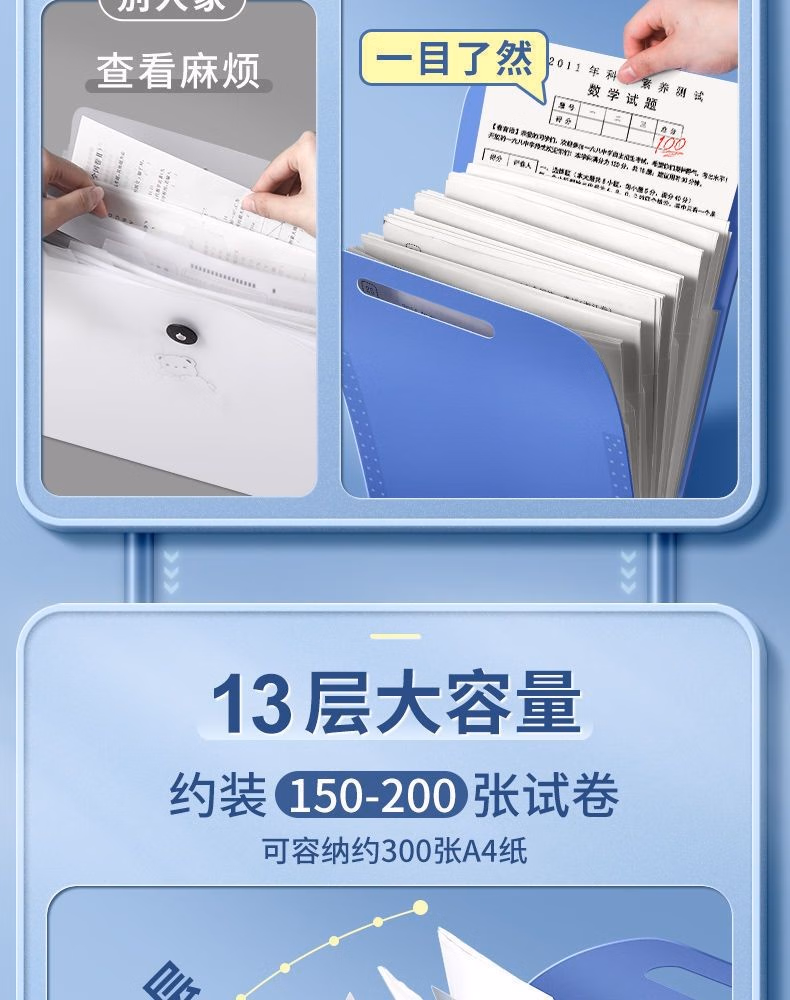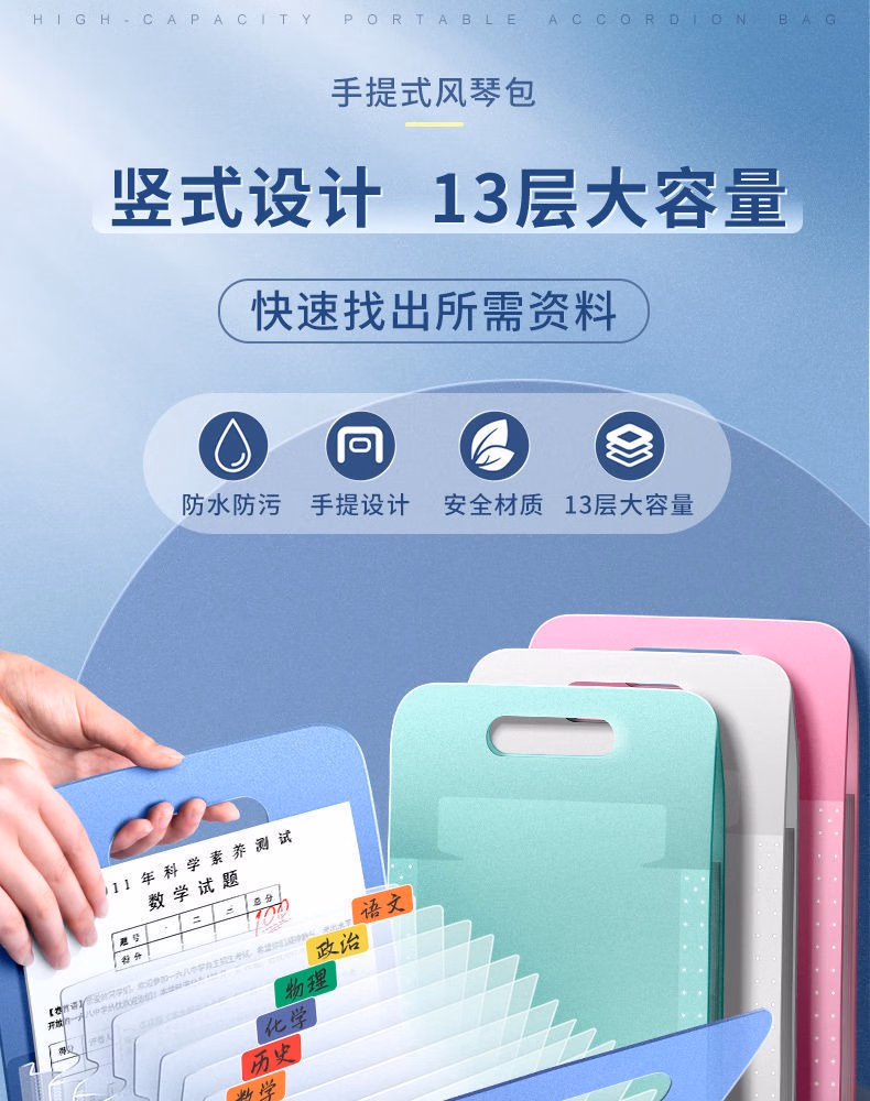西语 手提大容量风琴包文件袋a4学生试卷收纳袋分类袋文件资料收纳夹手提拎书本袋卷子分类整理神器 【包边升级款】白色/13层