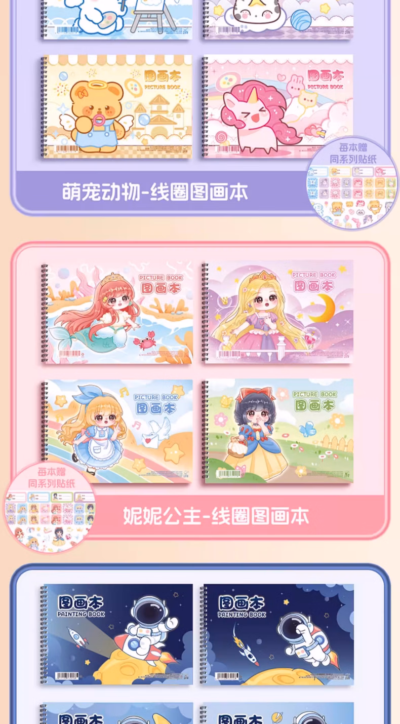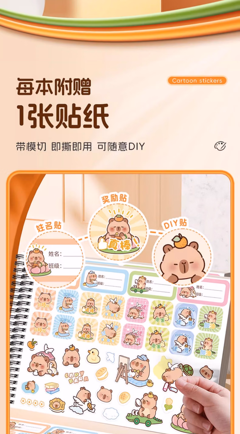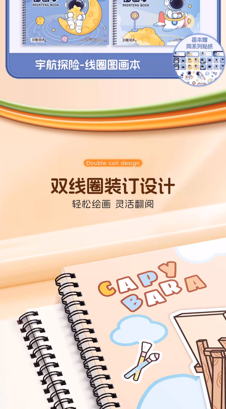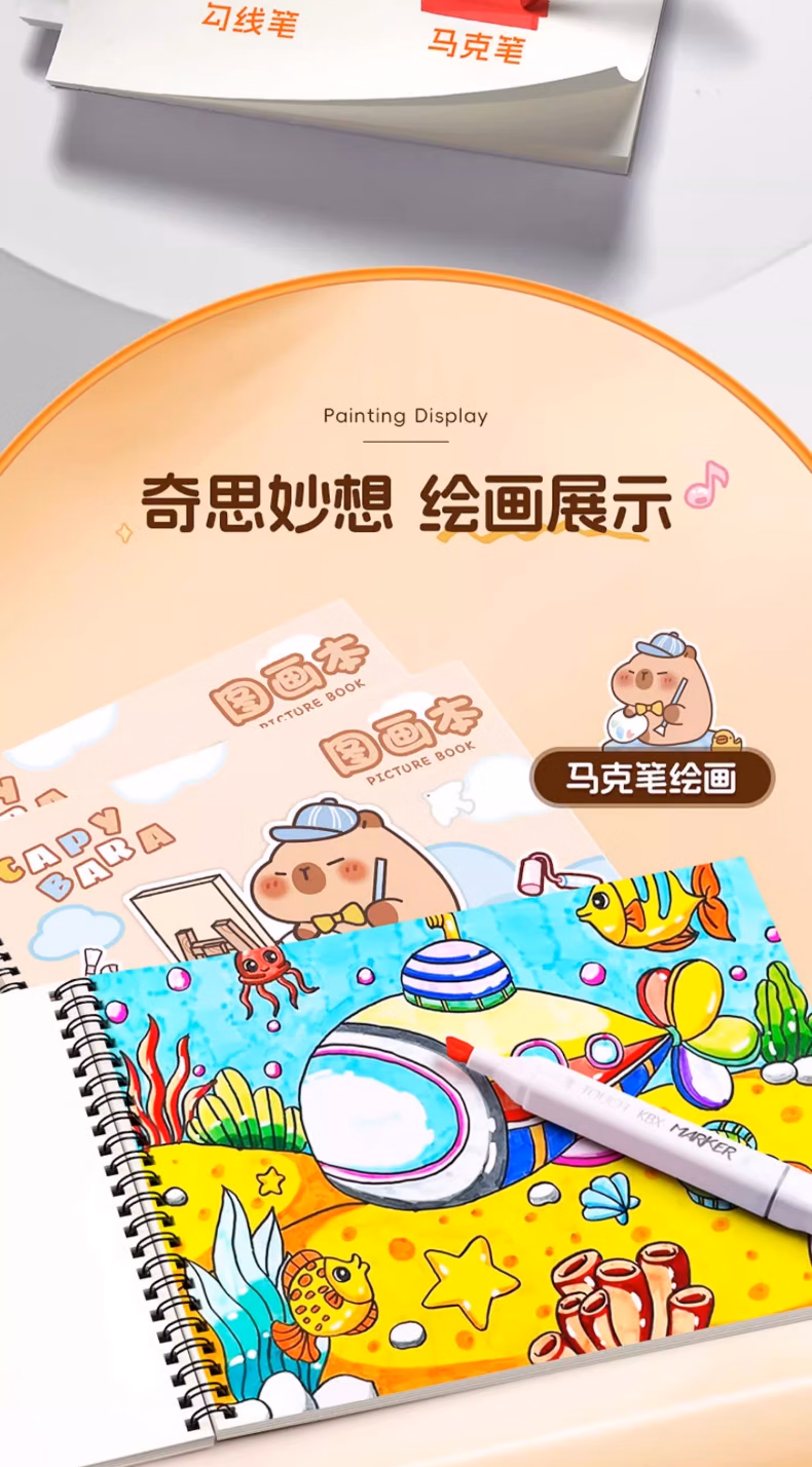 咔巴熊卡皮巴拉A4大号加厚图画本画画本绘画本儿童幼儿园小学生空白美术画纸涂鸦本线圈画册本不透色手绘 4本【卡皮巴拉】240页 贈100枚贴纸+姓名贴