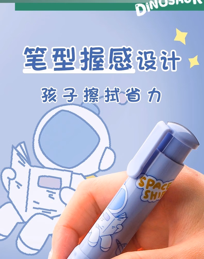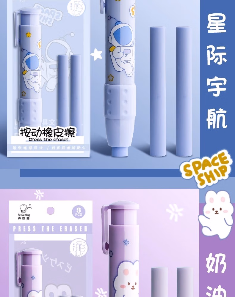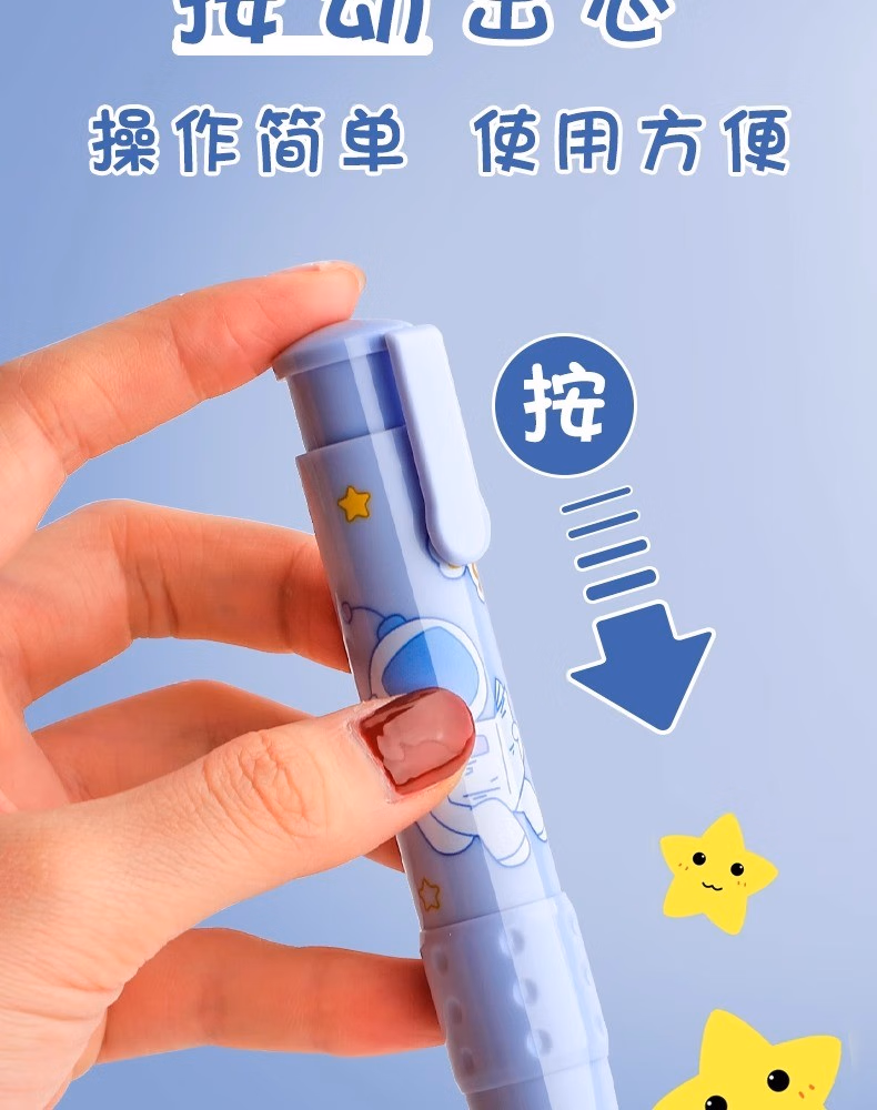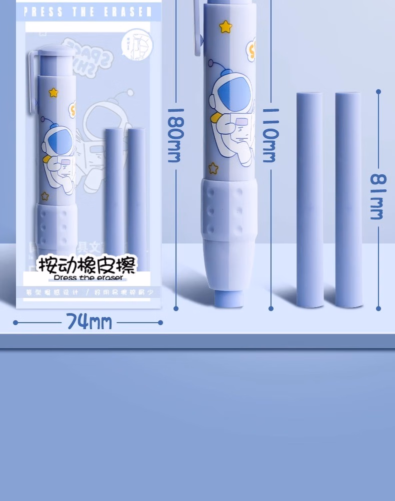 按动橡皮擦学生专用幼儿园小学生儿童无屑创意卡通可爱干净不留痕可伸缩橡皮替芯干净学习用品象皮一年级自动 【星际宇航】1壳+2替芯