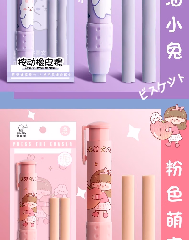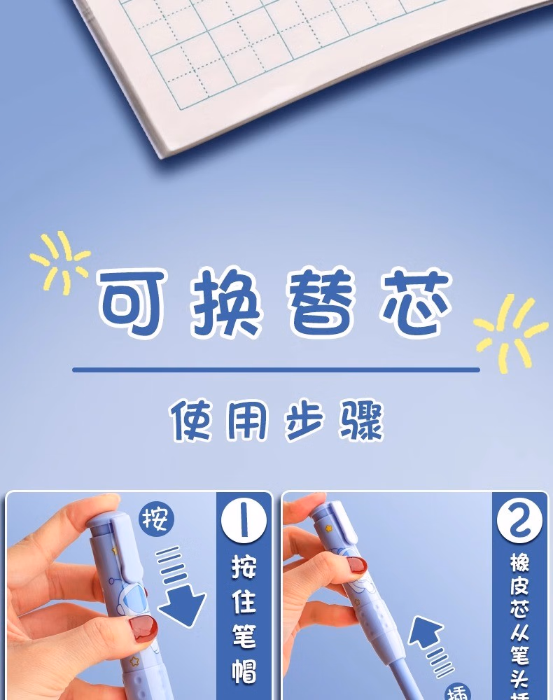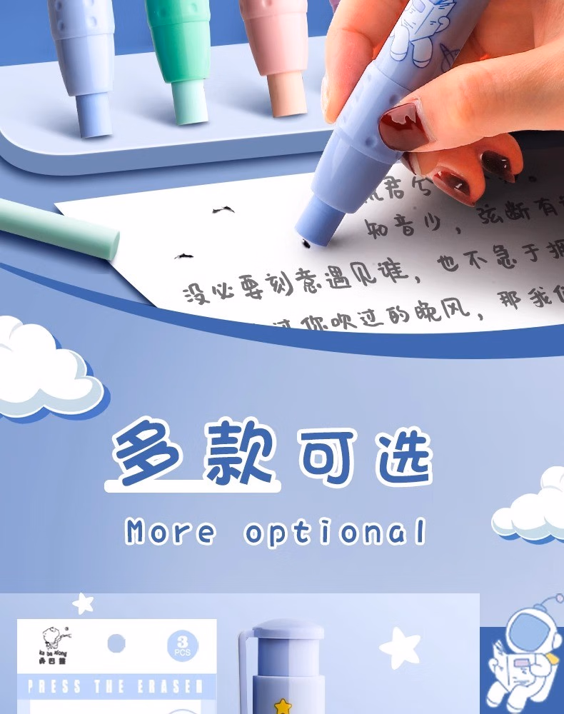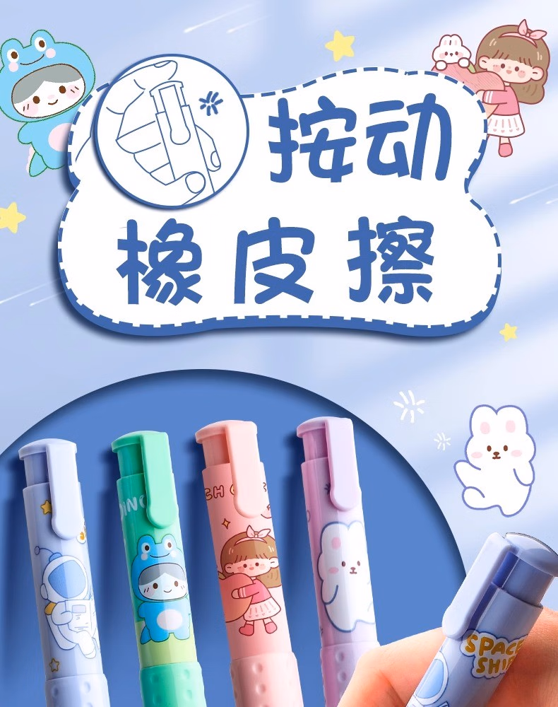 按动橡皮擦学生专用幼儿园小学生儿童无屑创意卡通可爱干净不留痕可伸缩橡皮替芯干净学习用品象皮一年级自动 【星际宇航】1壳+2替芯