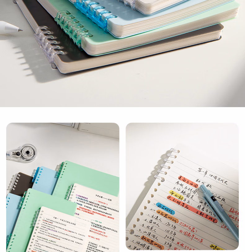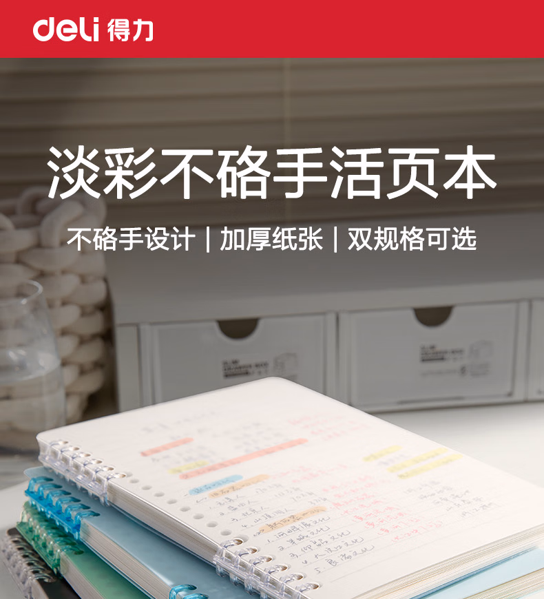 得力B5活页本笔记本本子不硌手8孔可拆卸横线学生加厚线圈本记事本大学生考研错题作业本简约大容量日记本 【B5横线60张】白色