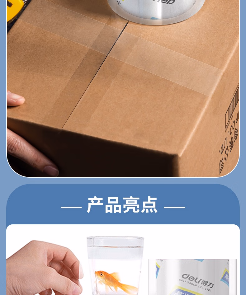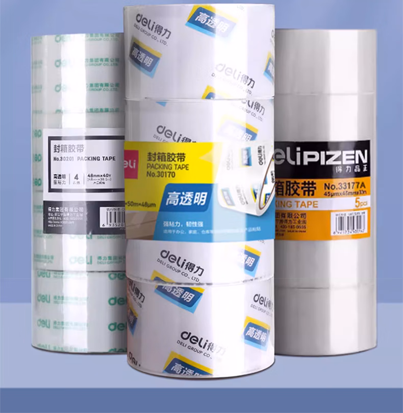 得力(deli)高品质透明胶带大号宽胶布打包胶带强力高粘度快递工厂仓库用透明封箱胶带封口胶纸办公用品 超透48mm*54.8m【单卷】