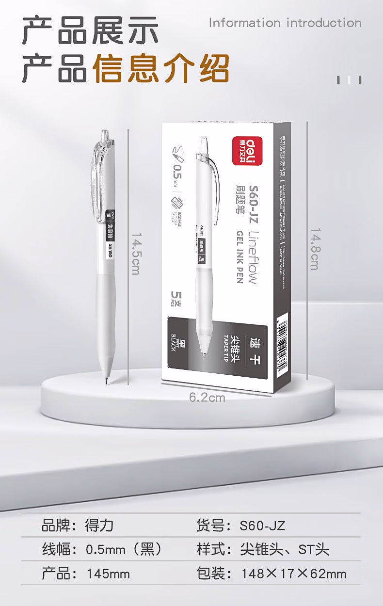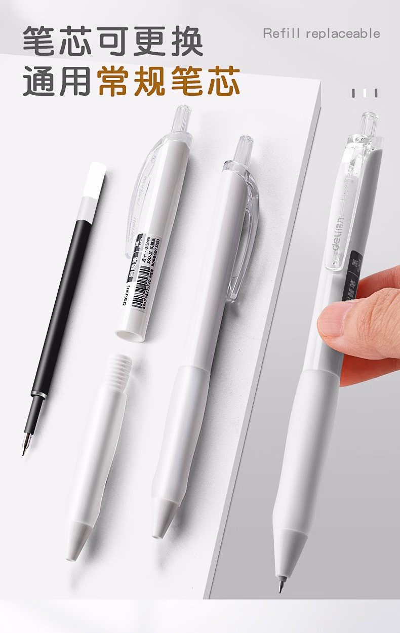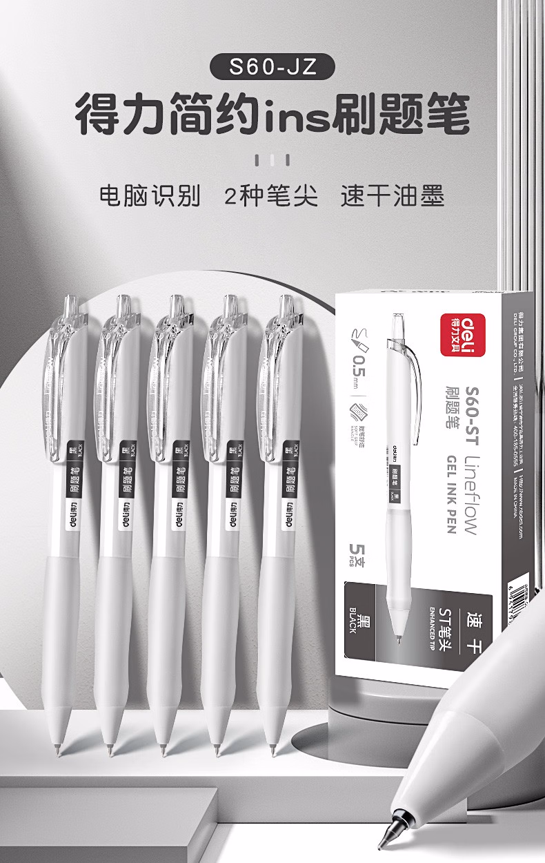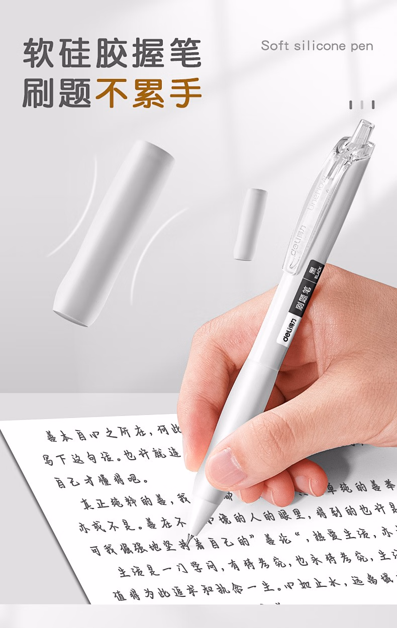 得力(deli) 小白笔顺滑刷题笔0.5mm速干按动中性笔黑色时尚ST笔尖学生用作业考试签字笔水性笔 刷题笔5支装+10支ST笔芯