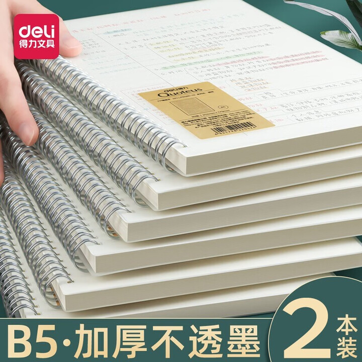 得力(deli) 线圈本b5笔记本子日记本简约大学生考研练习本螺旋本大号加厚笔记本本子记事本错题摘抄 B5横线/2本装【共320页】