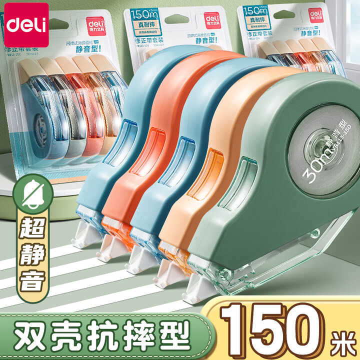 得力(deli) 大容量耐摔修正带文具学生改正带低噪音PET带芯顺滑强遮盖复印无痕便携不断带涂改带 【耐摔静音款】5个装/共150米